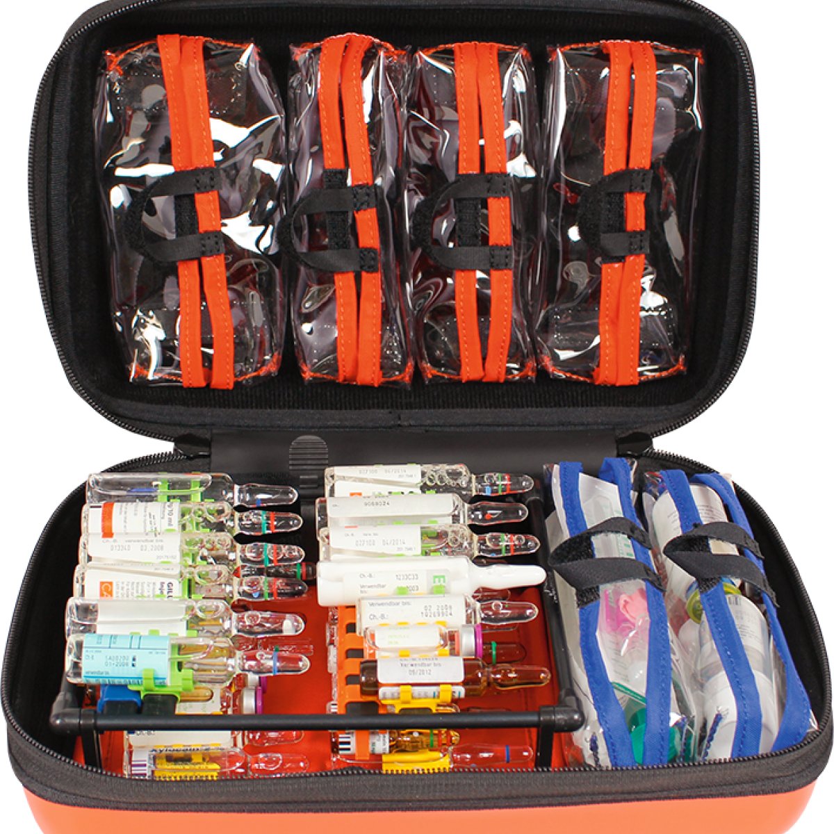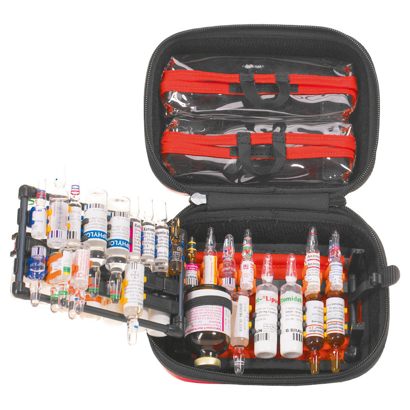 Průhledné kapsy umožní uskladnění dalšího příslušenství včetně vybavení pro intraoseální přístup. Je vhodný i jako samostatný modul do větších batohů pro urgentní medicínu. Pevný a omývatelný povrch pro snadnou dezinfekci.